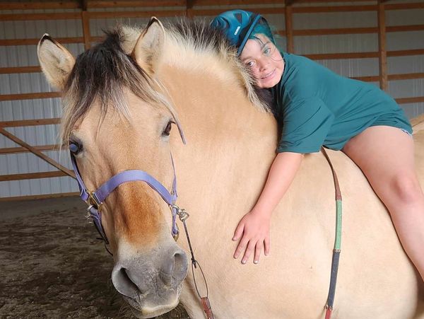 Heidi stands out with her mane and her cool color. She is our fjord that is 22 years old. We use her with those riders who need a solid base and a slow steady mount.